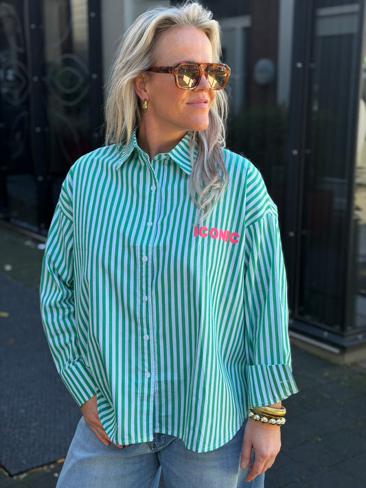 UitverkochtIconic blouse green stripe