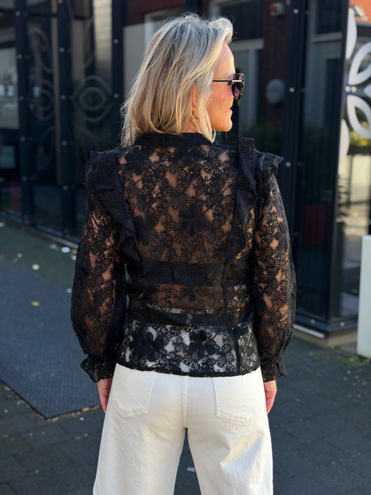 Kanten Volant blouse zwart
