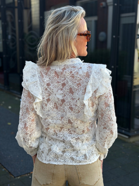 Kanten Volant blouse wit