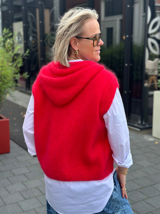 Mohair mix hoodie vest rood