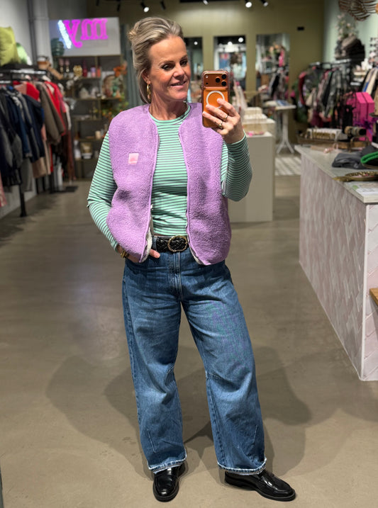 Dubbelzijdige teddy bodywarmer lila