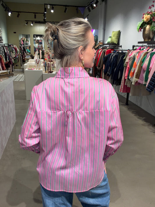 Pink Blouse joli green stripe