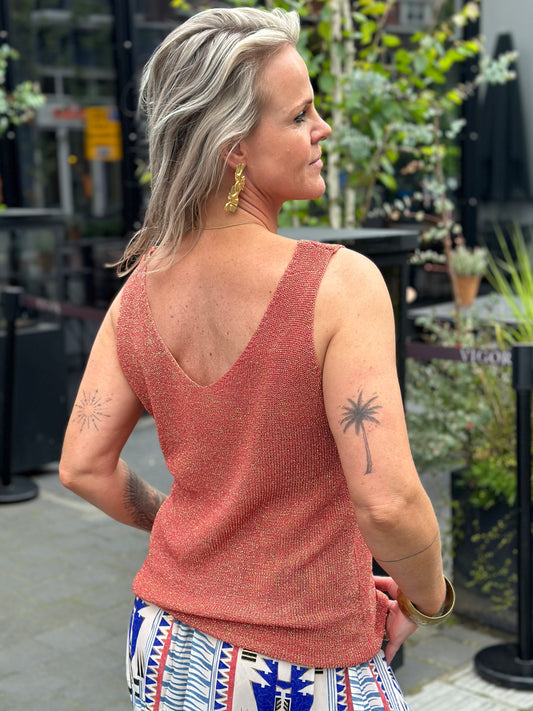 AanbiedingLurex Vhals hemd koraal