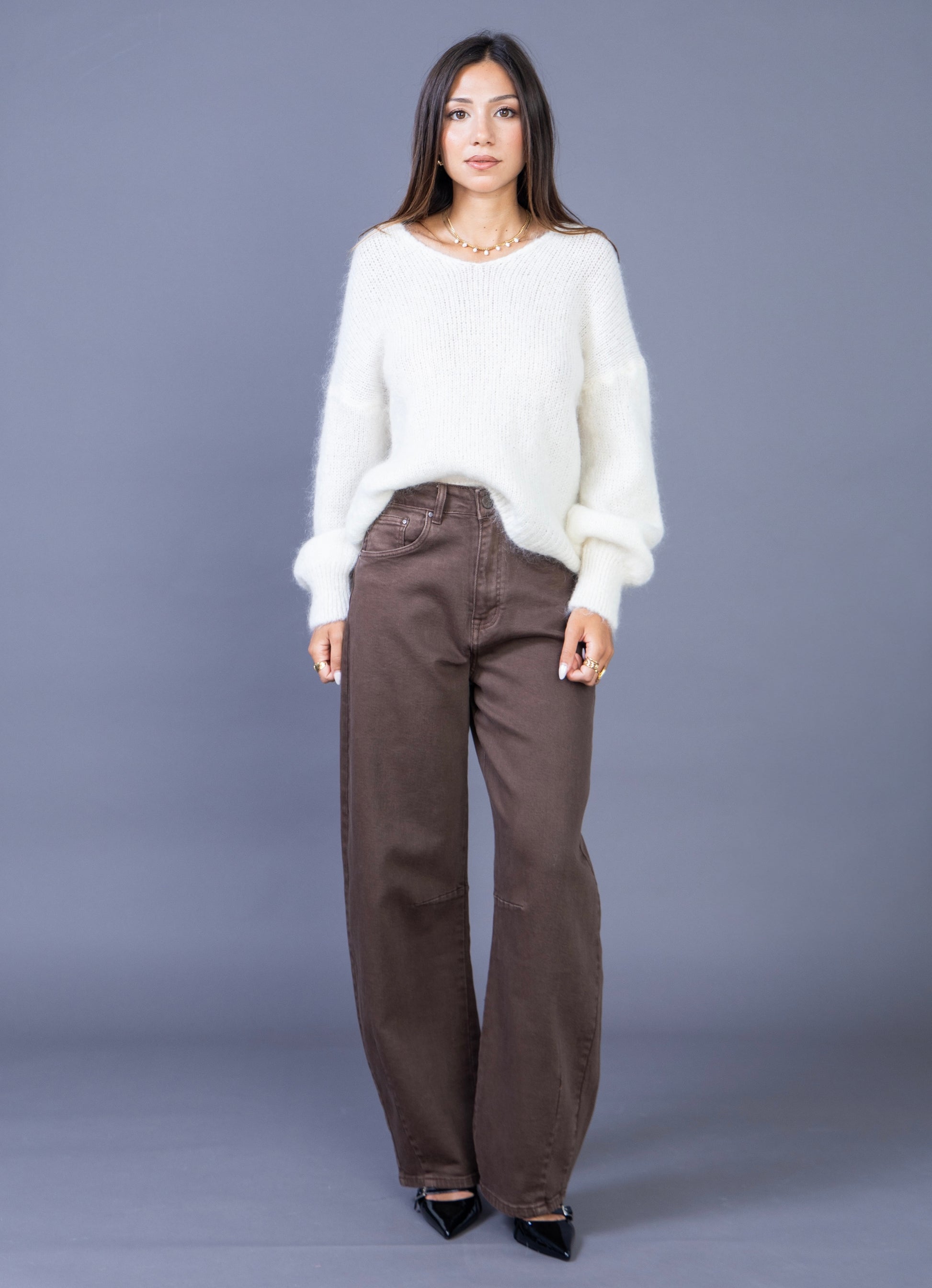 mega comfy barrel jeans met stretch. De broek heeft een mooie pasvormen en valt iets hoger in de taille