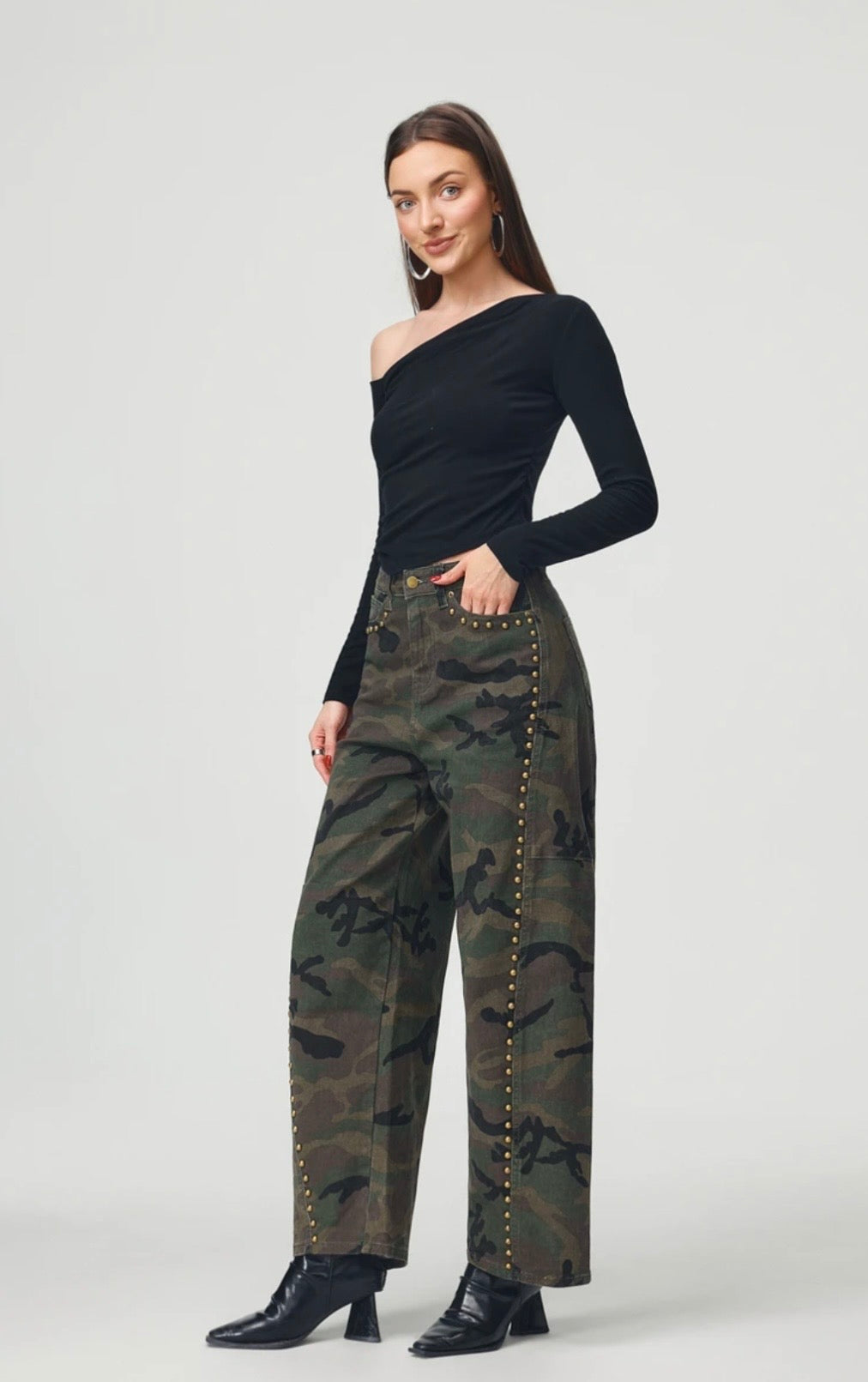 mega comfy ballon jeans met stretch en toffe studs De broek heeft een mooie pasvormen en valt iets hoger in de taille