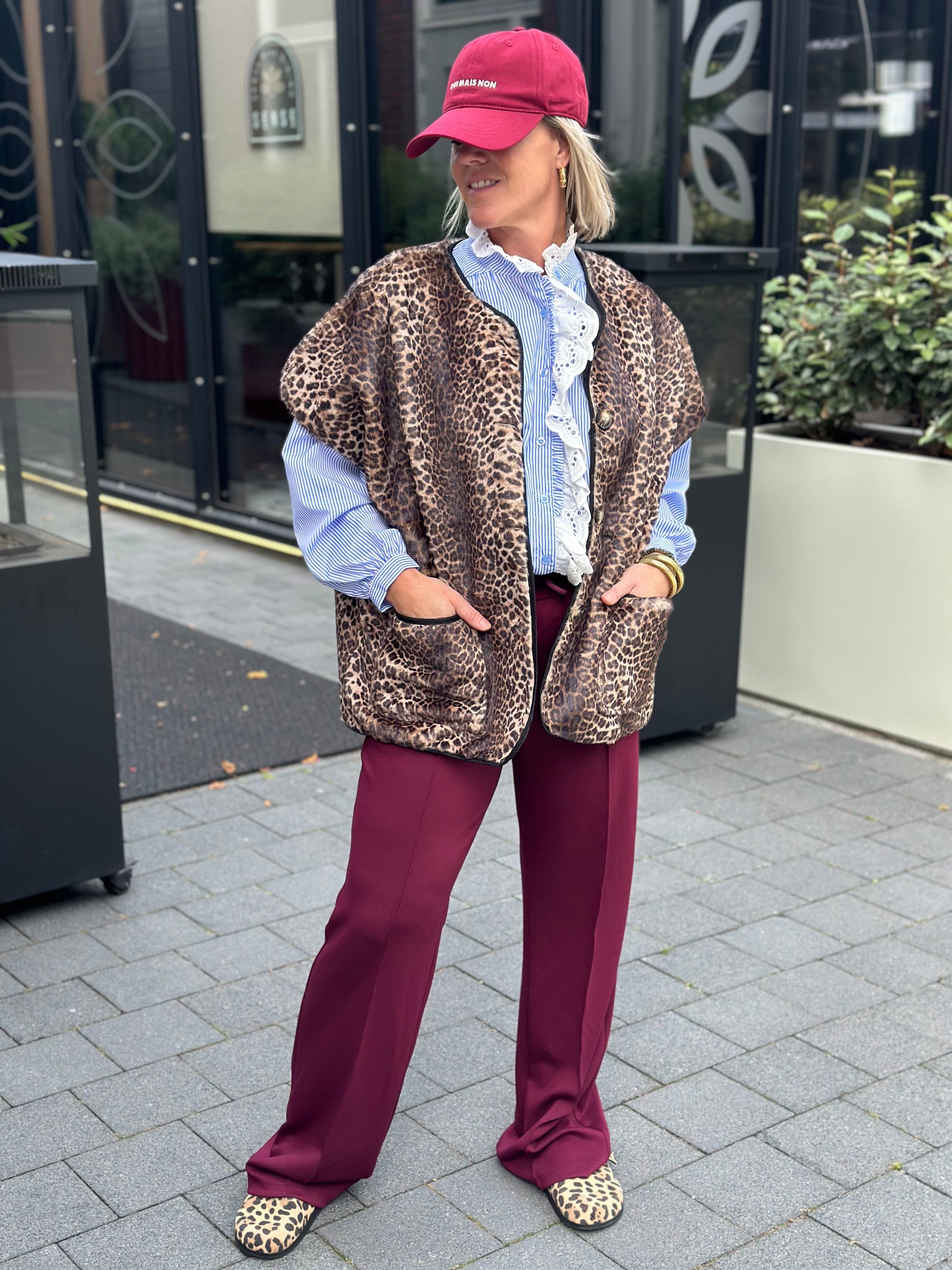 Furry oversized bodywarmer Leopard
