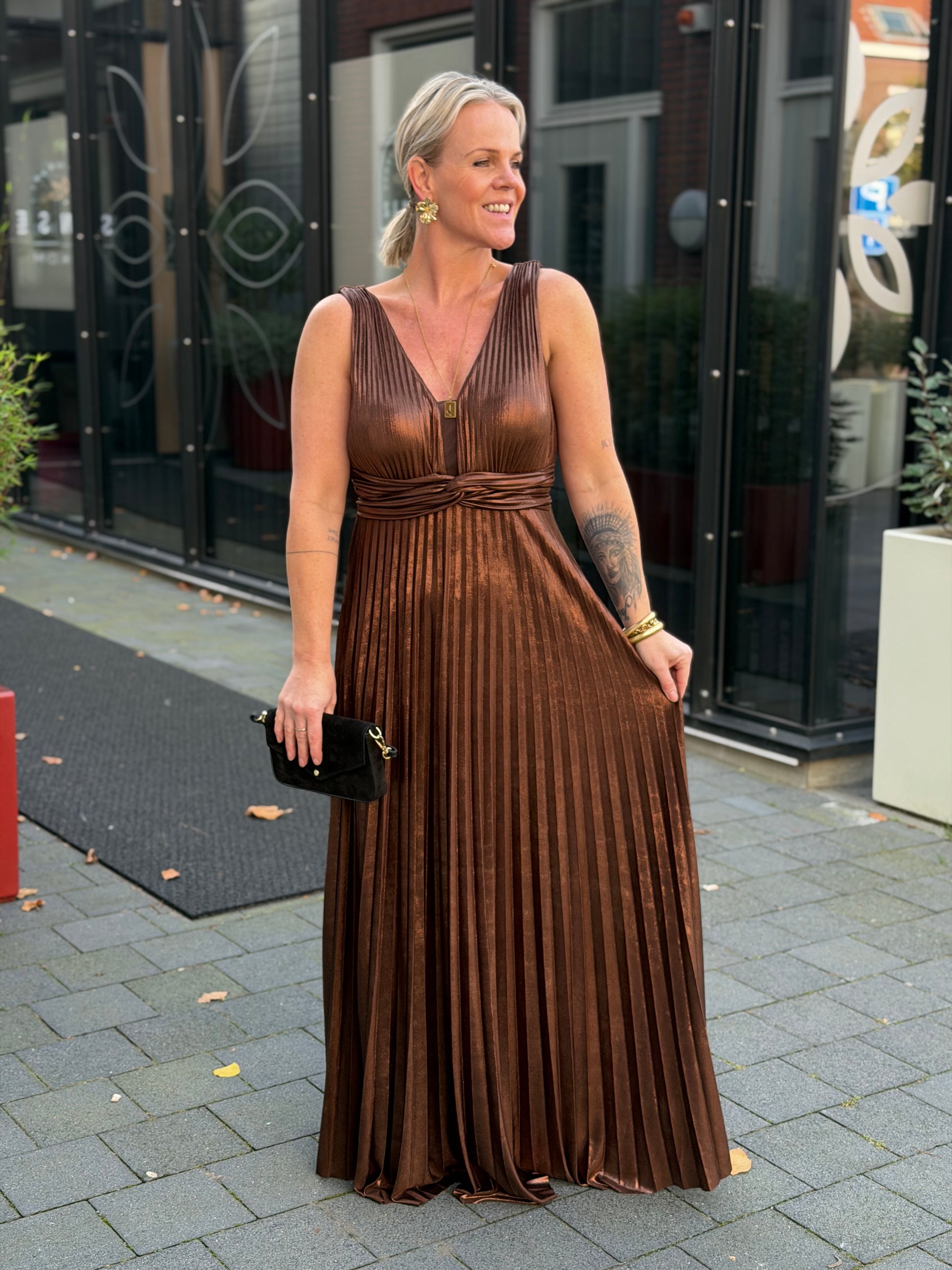 Glam plissé dress bruin