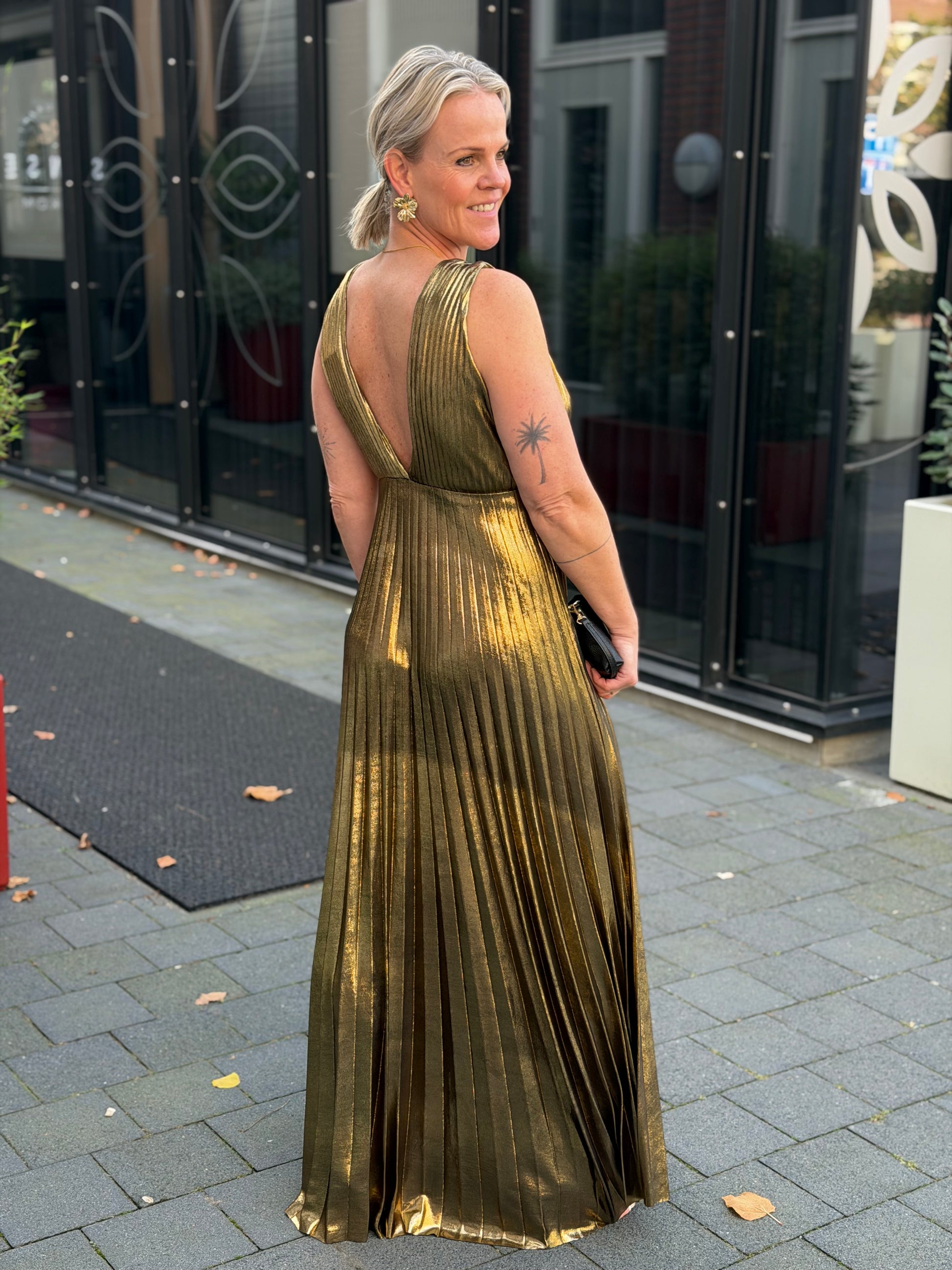 Glam plissé dress goud