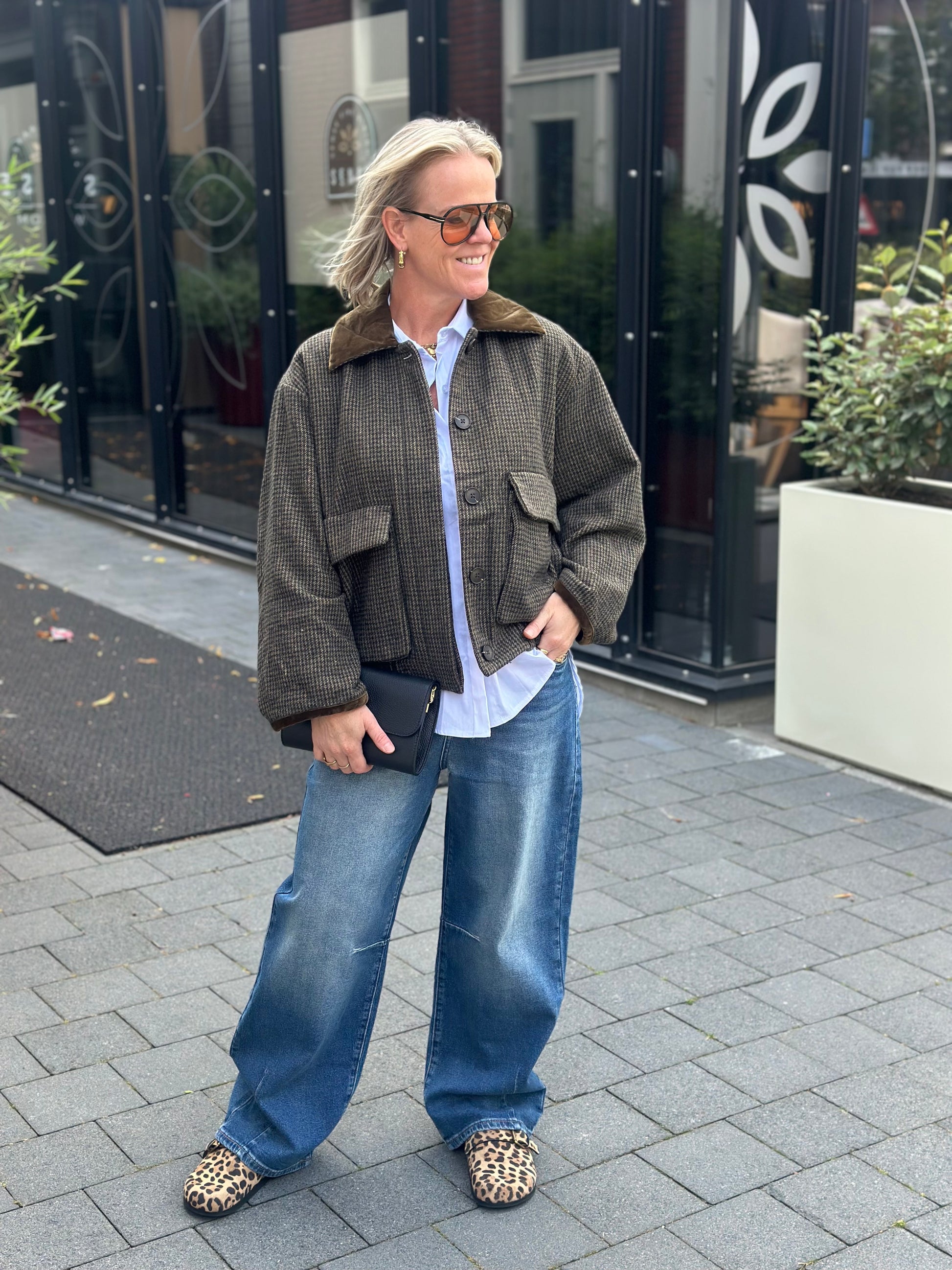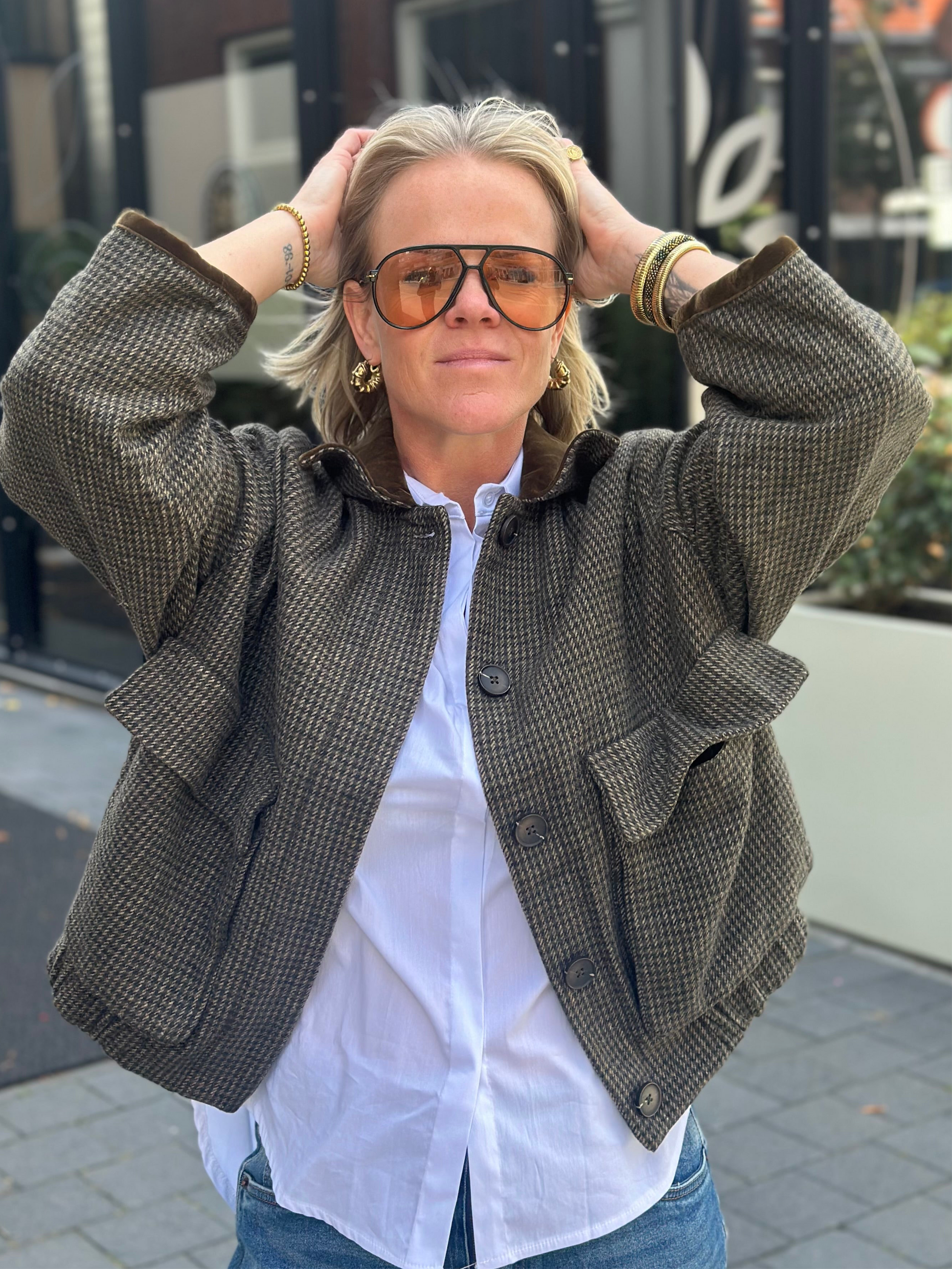 Super toffe piloten jacket in mooie dikke houndstooth stof.