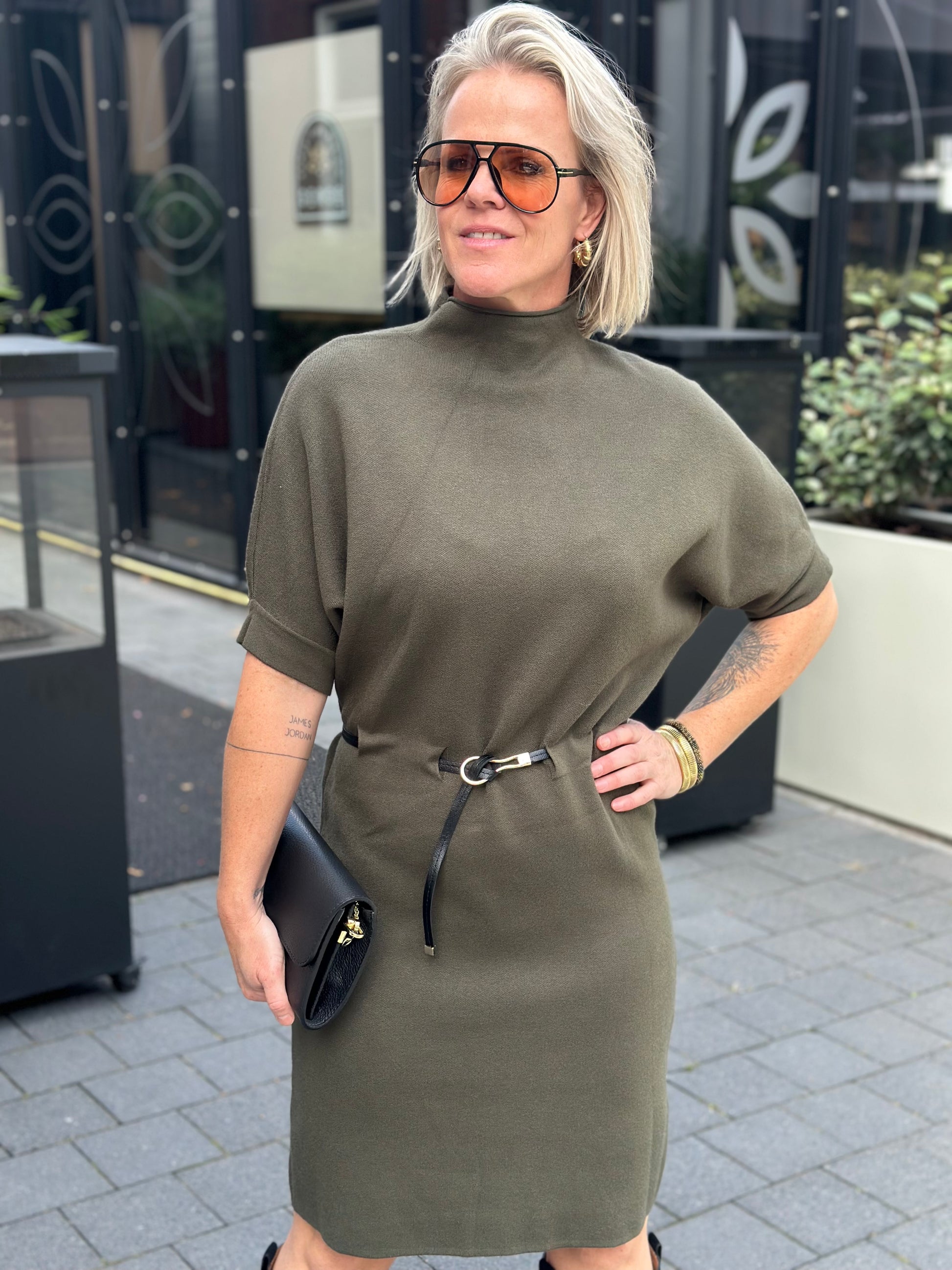 Mooi gebreid jurkje met ceintuur. Combineer met mooie lange laarzen