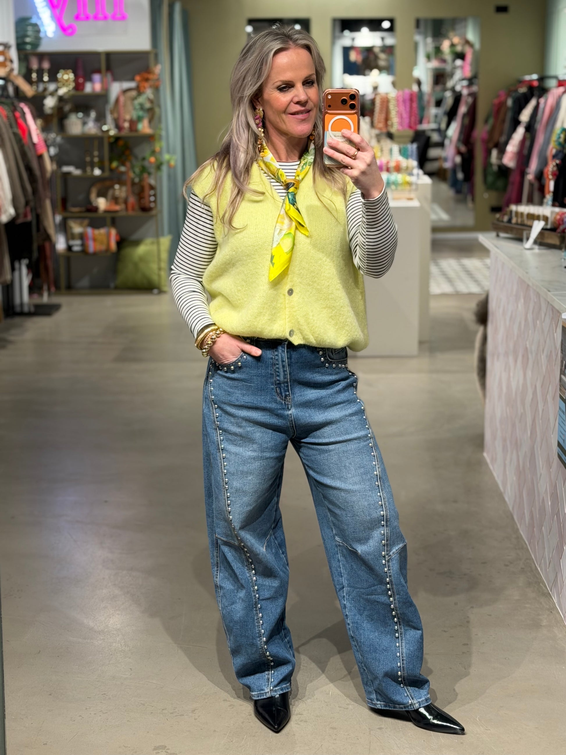 Super zachte Gillet mouwloos. Met knoopjes en Vhals. Leuk elastiek in het boord zodat je een beetje poft
