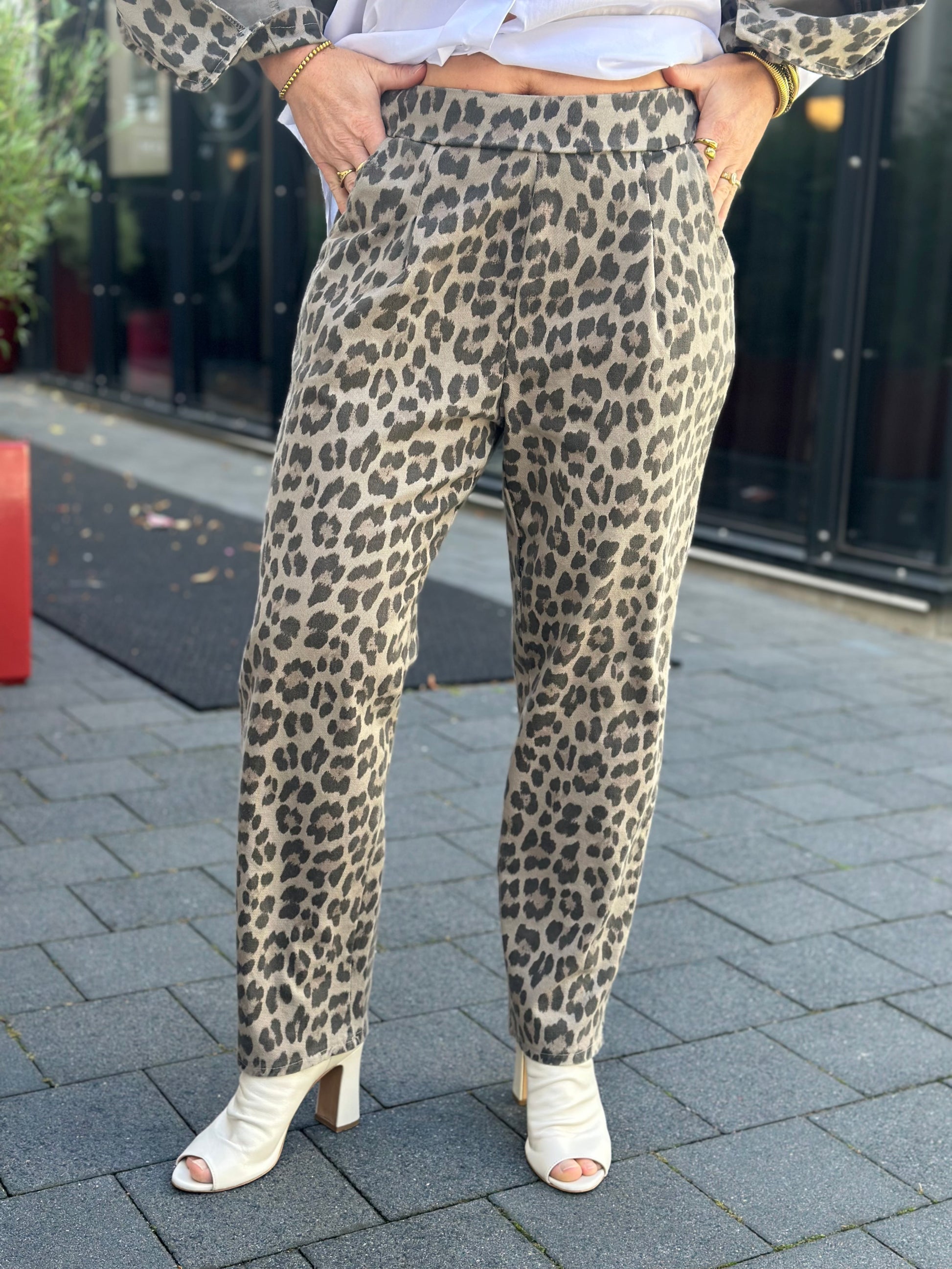 Helemaal hip met dit toffe denim broek met Leopard print. Combineer met matching Gillet
