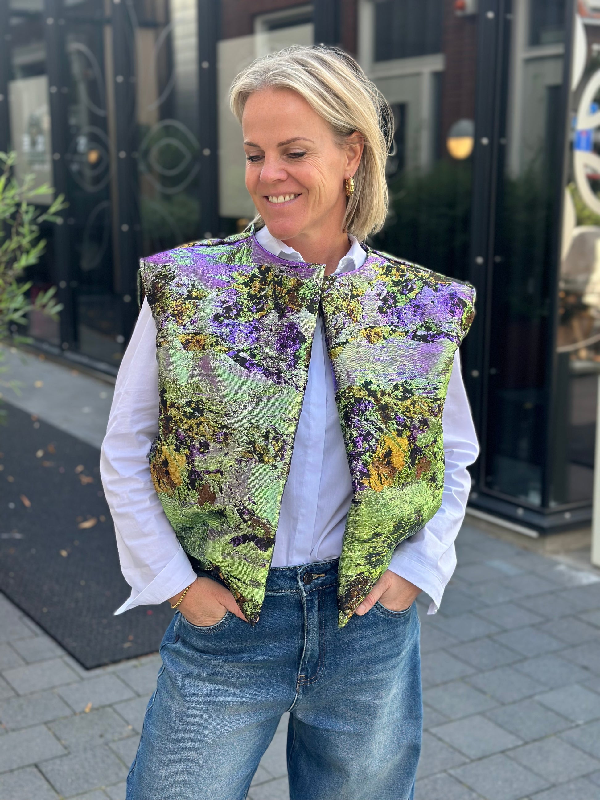 Metallic gilet groen paars