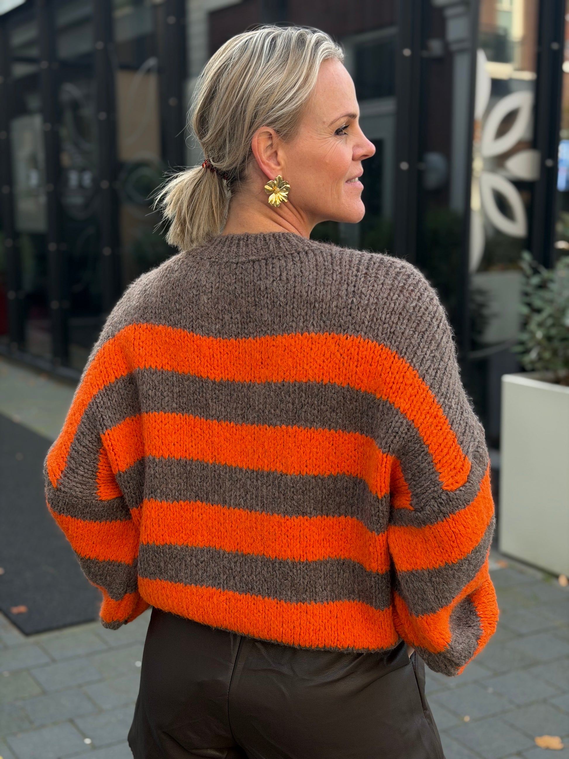 Streep trui bruin/oranje
