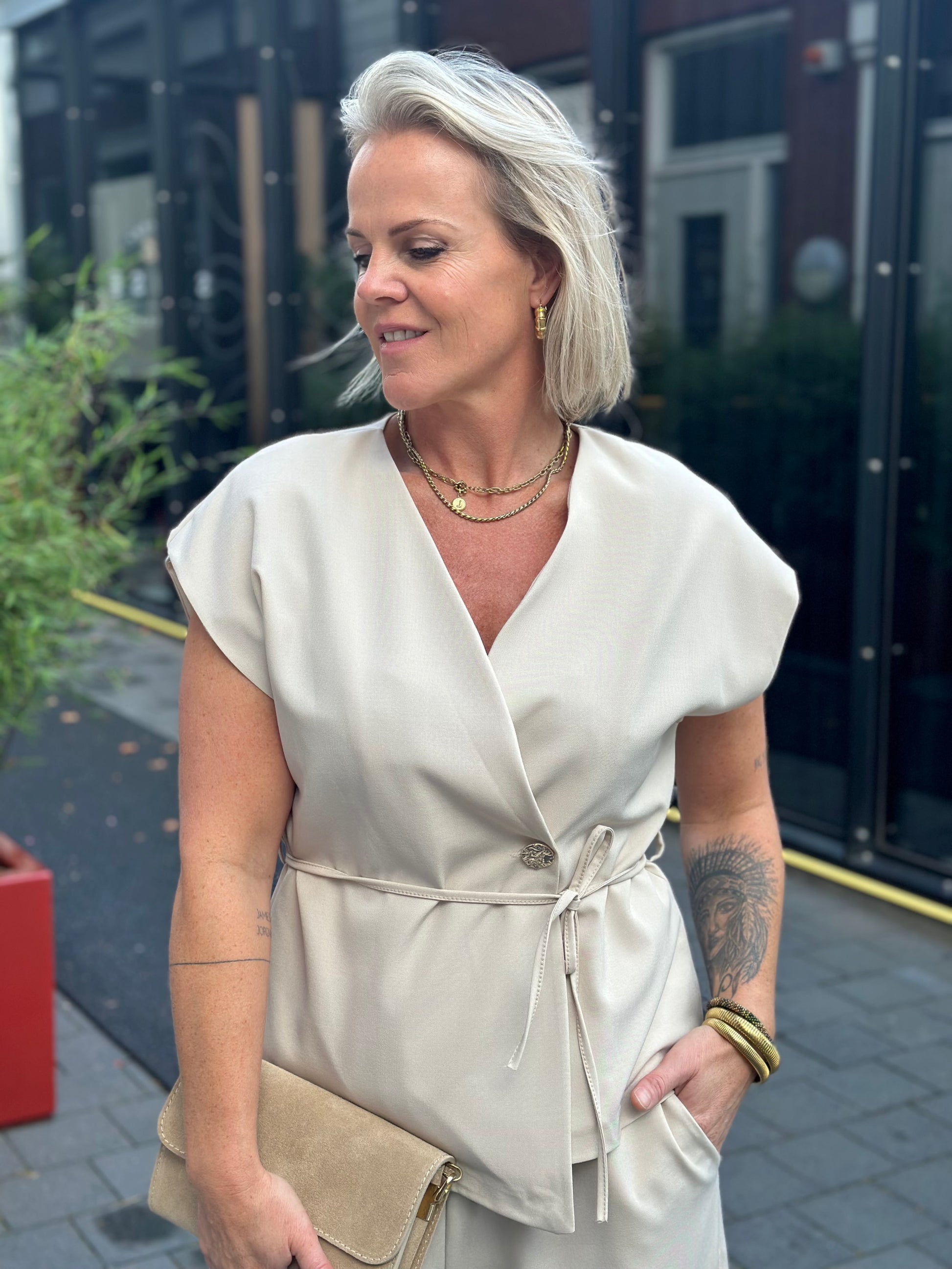 Geweldig setje met Asymmetrisch gilet en wide leg broek met zakjes en elastieke band