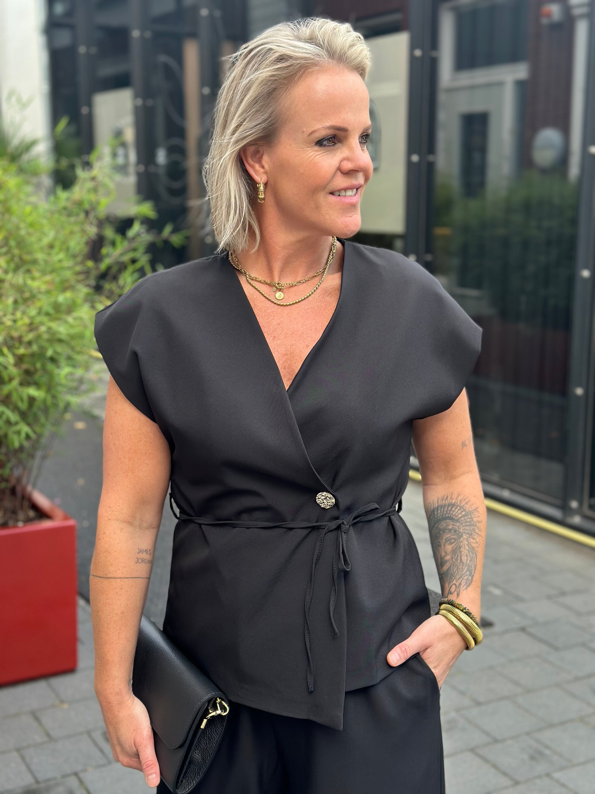 Geweldig setje met Asymmetrisch gilet en wide leg broek met zakjes en elastieke band